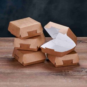 Hergestellt aus stabilem Karton mit PE-Beschichtung, ist die Box lebensmittelecht, fettabweisend und hält auch bei heißen Speisen zuverlässig dicht. Perfekt geeignet für Gastronomie, Take-away und Events.