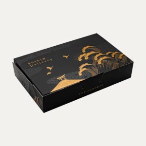 Hergestellt aus strapazierfähigem Hartkarton, bietet diese Sushi-Faltbox die perfekte Verpackungslösung für Ihre köstlichen Kreationen. Das integrierte Sichtfenster aus Zellophan erlaubt Ihren Kunden einen appetitlichen Blick auf die frisch zubereiteten Sushi-Rollen – ideal für Take-away und Präsentation.
