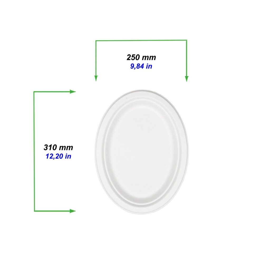🍽️ Teller aus Zuckerrohr – Oval (310 x 250 mm)