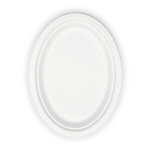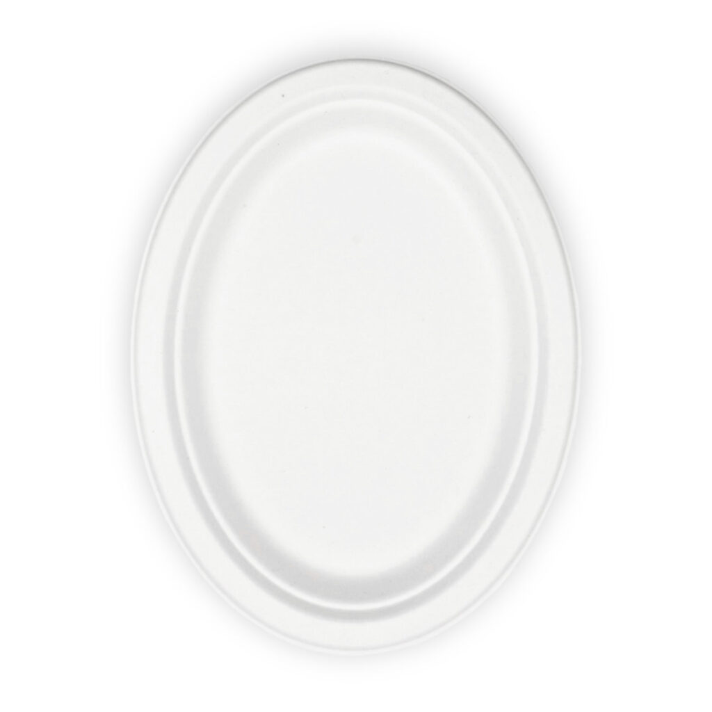 Hergestellt aus nachwachsendem Zuckerrohrmaterial (Bagasse), bietet der Teller eine stabile und robuste Oberfläche, die auch für warme Speisen bestens geeignet ist. Mit seinem eleganten ovalen Design setzt er kulinarische Highlights – ganz ohne schlechtes Gewissen gegenüber der Umwelt.